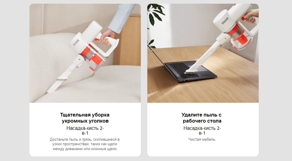 | Особенности | до 40 минут автономно работы, насадка 2-в-1 позволяется произвести уборку в узких местах |