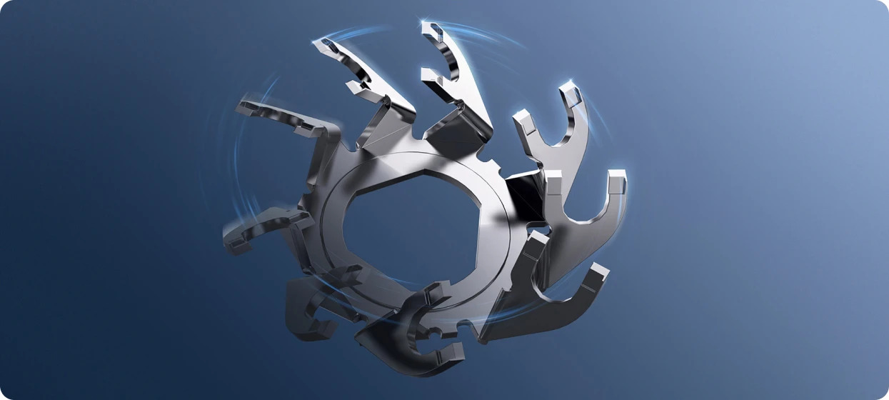 Интеллектуальное управление скоростью обеспечивает стабильную высокую скорость, сохраняя высокую мощность даже при низком заряде батареи и позволяя непрерывно бриться без защемления волос.